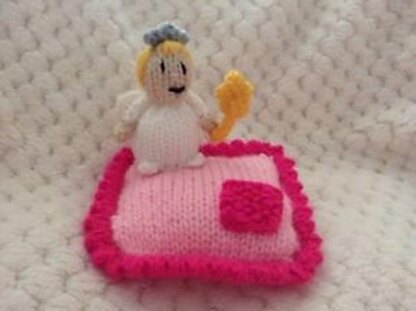 This is a beautiful tooth fairy knitted pillow pattern with a special pocket to put the tooth inside for the tooth fairy to leave a magical coin. The pillow measure approximately 10 cms by 10 cms and the fairy measures approximately 8 cms tall.