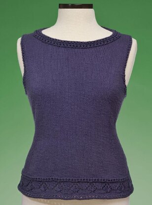This lovely shell is elegant with its wide-set shoulders, shaped waistline, and simple edging. Because it’s worked from the top down, you can customize the length to suit you. Wear it by itself, or with its coordinating cardigan, Pattern# 170.