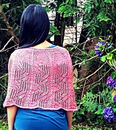 It’s knitted in the round, from the bottom up with a stunning lace pattern and an easy cable stitch. The decreases up to the neckline are just beautiful and the I-cord bind off tops it all off.