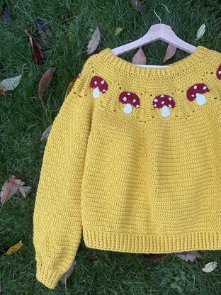 Make this gorgeous crochet cardigan! Featuring toadstool granny squares around the neck yoke, this jumper is worked top down and can be adjusted to fit you perfectly. There is a decrease in the sleeves and ribbing for the edging. The pattern is written for sizes Xs up to 5XL.