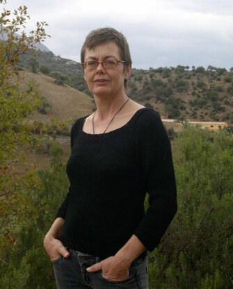 A becoming casual jumper in stocking st with ¾ long set-in sleeves in an aran-weight cotton, silk mix, linen/cotton mix. The meterage requested 50 g = 75 m circa. Welt, cuffs and around neck a textured pattern worked from chart. Can be worked flat or in rounds on circular needles – all explained in the pattern. The edging around neck in reverse crochet. Shaped around the waist (optional).