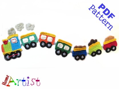 The pattern provides instructions to make a cute crochet applique that can be used in inumerable ways...decorate and personalize your favorite objects like hats, t-shirts, bags, school knap-sacks and lots of other stuff you can think of. The Train Locomotive measures about 3 1/2 in. in height by 3 1/2 in. wide using crochet hook 2.5 mm but the size can be varied by using thinner or thicker yarn and types of hook. Colors can be changed according to your personal preference. The pattern is designed for worsted weight yarn and uses American English crochet terms. This crochet pattern is available for Instant Download. Once your payment is received, you will get an email with the download link and details of your order. In case of problems feel free to contact me anytime.