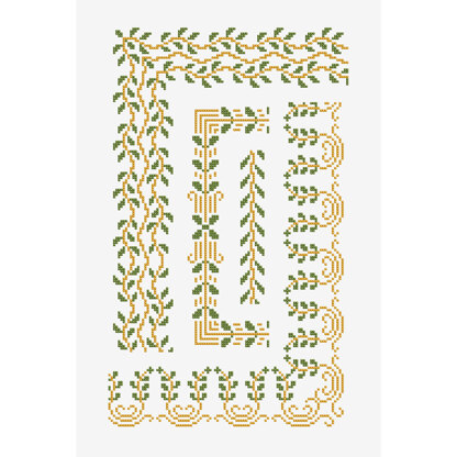 Creat intricate vine borders and give a vintage feel to your homeware with this decorative cross stitch pattern. Download this free design and frame a table cloth or tea towel with these vine leaves.