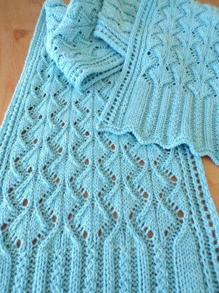 This scarf is designed to keep that winter chill well at bay but in an elegant style. Interesting lace pattern of the body lays nicely with the patterned rolled edges and the plaited ribbing on both ends works effortlessly into the lace body.