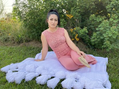 The Traveling Vines Tank is a delicate but durable garment designed with airy lacework in cotton yarn that is perfect for the heat of summer. It has a classic fit with no shaping. The twelve row/round repeated lacework is easily attainable for the ambitious maker.