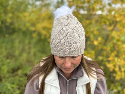 Challenge yourself to a travelling cable knit hat! This is such a interesting hat to knit. Watch the cable section magically move across the body of your hat.