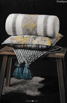 This is a pattern for a Trees Bolster Cushion Cover, originally published in The Knitter. It is knitted in three pieces, with the end pieces knitted by increases in a circle. The main part has a combination of fairisle and intarsia motifs, and moss stitch edges. Photos The Knitter.