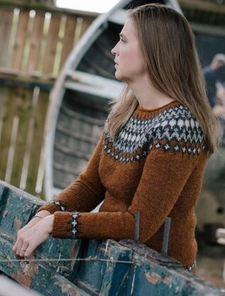 Treysta is the Icelandic word for trust. This colorwork sweater is knitted seamlessly and in the round from the top down. The pattern calls for Icelandic wool, but you can use any heavy worsted or worsted weight yarn. Designed to be worn with 2–4" / 5–10 cm positive ease.
