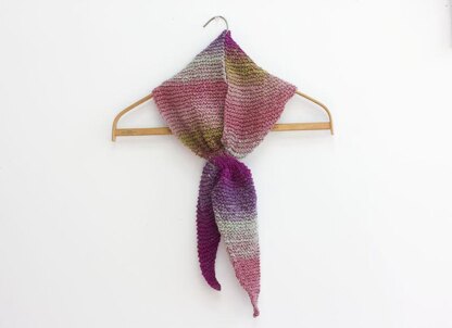American knitting terms. Suitable for medium skill level or an adventurous beginner. A long triangular scarf with a keyhole for easy wear. This is a versatile pattern; it can be as large or small as you want, you can make it long and narrow or short and wide. It’s also easy to experiment with yarns in different weights.