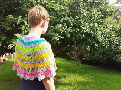 A colourful crescent shawl which combines lace and garter stitch with a colourful yarn for a fun accessory.