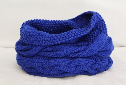 This infinity scarf is done in one piece with the effects of a triple layer. This chunky cowl has a wonderful drape to it. The combination of two different cables and stitch patterns give a unique look to this multi- dimentional scarf.