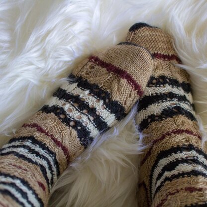 The pattern is written for the magic loop method for knitting socks; however, the design could be worked on double-pointed needles or mini-circulars instead should you prefer.