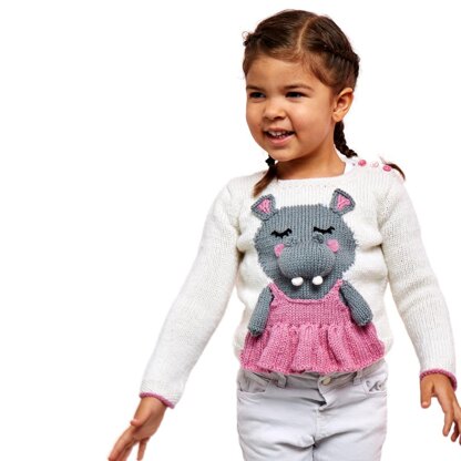Trisha is a set in sleeve easy knit sweater with a simple intarsia panel. The features, including the fabulous tutu is knitted separately and sewn on at the end.