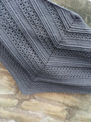 Finished sizes are (after blocking): DK - 50in/127cm in width and 21.5in/54.5cm deep 4ply - 48in/122cm in width and 18in/45.5cm deep