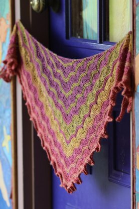An unusual spine construction makes for an engaging and satisfying knit, and the shallow triangle shape makes it easy to wrap and drape.