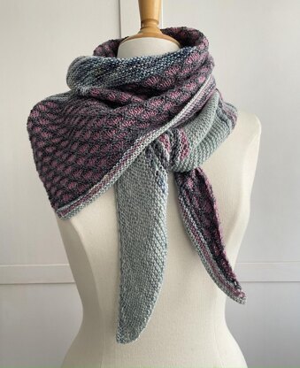 Für das Tuch habe ich 4 Farben verstrickt: 28g Tempelhof Horizon, 54g Wedding Blues, 22g Kanal und 39g Kotti