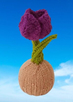 This delightful chocolate orange cover is designed to resemble the bulb of a tulip, with the stem and flower emerging gracefully from it. The cosy features four individually knitted petals that overlap, creating a lifelike and vibrant tulip bloom. At the heart of the flower are delicate yellow stamens, ready for bees to collect pollen, adding an authentic touch to the design.