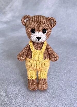 This is a knitting pattern for a stuffed toy teddy called Tumble. The toy is knitted on 2 needles and then sewn.