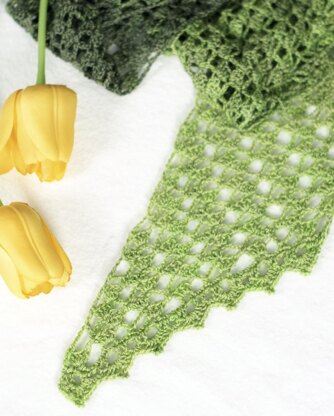 Add a touch of flair to your outfit with this gradient scarf. The Tumbling Shells Scarf is worked back and forth on the bias from one end to the other. Once the main scarf is complete, the edging is worked at each end.