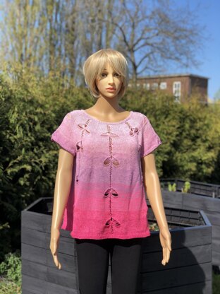 Lass die Schmetterlinge frei! Diese luftige Tunika wird in Runden von oben nach unten gestrickt. Nach unten hin wird die Tunika etwas ausgestellt, so dass sie jede Figur umschmeichelt..