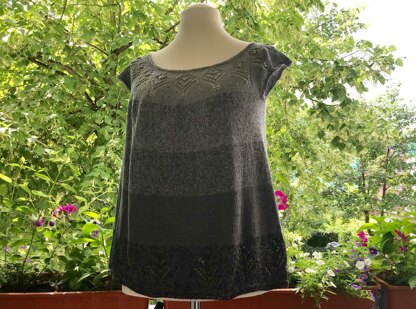 Diese Tunika wird in Runden von oben nach unten gestrickt. Das stilisierte Tulpenmuster an der Passe wird unten wieder aufgegriffen. Dark Tulip besticht durch schlichte Eleganz und ist trotzdem ein luftig-leichtes Sommershirt.
