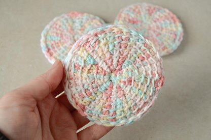 Learn Tunisian crochet in the round the easy way. Make these pretty and soft scrubbies for yourself or for your friends and learn awesome tricks with Tunisian crochet: