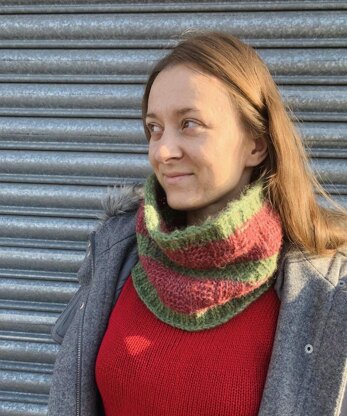 The Tunisian Crossed Basketweave cowl is worked flat, RS facing from right to left, and assembled using the locking mattress stitch along the short sides of the project.