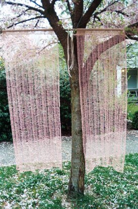 Pink lace could be a recipe for sugar-sweet disaster, but not if it’s balanced with geometric structure and trimmed in a tonal color. These surprising Tunisian lace curtain panels hit just the right balance—open, airy and light—with just the right amount of color contrast at the curtain rod band.