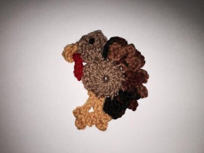Last minute Thanksgiving Turkey Lapel pin; works up quickly for a holiday gift or festive addition to your outfit or a holiday gift. Uses just samll amount of scrap worsted weight yarn. .