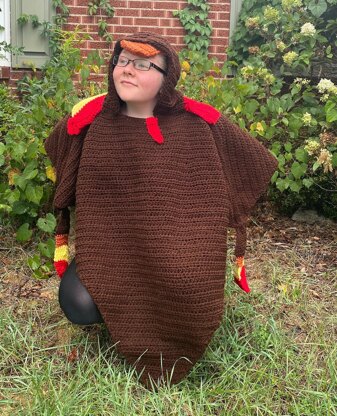 Who is ready for Thanksgiving! I know I have been having a mad craving for some stuffing and turkey with a side a mashed potatoes! Making this Turkey Poncho confirmed that it is just around the corner. This poncho is made using a half double crochet and a removable beak.