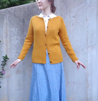 Finished bust, buttoned: 31 (33.5, 36, 39, 42.5, 45, 49.5)”/78.5 (85, 91.5, 99, 108, 114, 125.5)cm