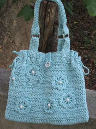 Beautiful bright turquoise crochet summer bag made of cotton yarn. Materials used: cotton yarn, metal button or magnetic snap, metal rings, plastic beads.