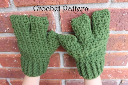This 3 finger textured crochet glove pattern can be used to stitch up one of several of your favorite character's hands, from the Ninja Turtles to those loveable minions or just your average alien look. This 3 finger pattern covers them all. Use it to stitch up a warm winter accessory to match the character jacket for your family members and friends, or as a great, warm costume accessory to wear with your Ninja Turtle, Minion or Alien costume. There are a plethora of possibilities with just this one pattern.