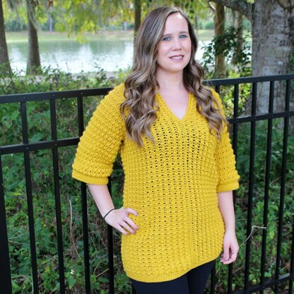 The Tuscan Sun Tunic is a simple side to side construction that has tons of beautiful texture and an elegant v neckline! This pattern comes with instructions for children’s sizes 2-10 and adult sizes XS-2X! This project is very versatile and easy to adjust as well!