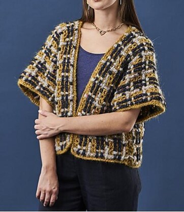 This crochet boxy jacket uses a mix of simple crochet stitches and weave.
