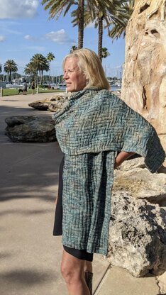 A long large wrap knitted with a texture rib and a cowl to go with the wrap. Both pattern are included Knit the wrap 6 skeins or knit the cowl 2 skeins Knit both and you will need approximately 1900 yards The softness of Mountain color Tweed yarn (85 percent superwash merino and 15 % donegal neps) just make you want to keep it on all day. A fun stitch pattern, 24 stitches repeat with 40 rows, you decide how long you want either. I made mine around 90 inches, pattern calls for 70 inches, so just do more repeats if you want longer.