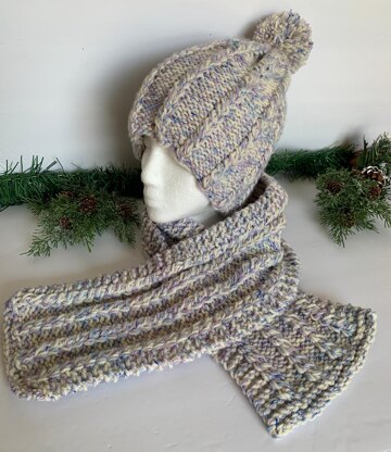 Soft, cute and cuddly hat and scarf set to wear in Spring, Fall and in the coldest of Winter. This easy knit set makes a perfect gift for anyone that goes outdoors. It is not only fashionable but has warmth and strength to get you through the cold weather Seasons. A great Christmas gift, and we find most knitters can knit this entire set in only a few days. A good pattern to keep on hand in your library for a great gift or just for someone that wants to keep totally warm. Worsted weight yarn, knitting needles, US #10 and 11.
