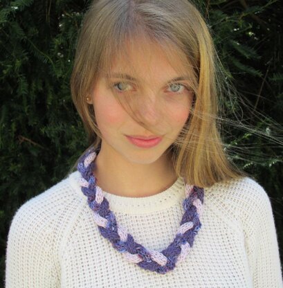 Using three different yarns, this i-cord necklace is assembled in a way that you get several necklace styles all in one. It can be worn twisted, braided, straight or knotted - a completely versatile necklace! As the song says "you know you look so good" - Twist and Shout!