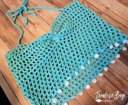 The top features a gorgeous front twist which is so easy to make! The optional beaded shell edging is then added to the bottom for some cute detail.