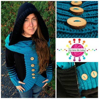 This original spin on the Twisted sweater is sure to make quite a few heads turn your way! Warm, stylish and comfortable, this will soon become your favorite garment! The cardigan is worked from by picking up stitches from the edges of the cabled band and can easily be adjusted to fit all!