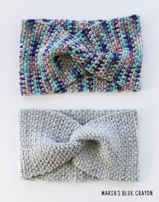 This twisted crochet ear warmer is made with stitches to create a stretchy fabric with no gaps/holes.