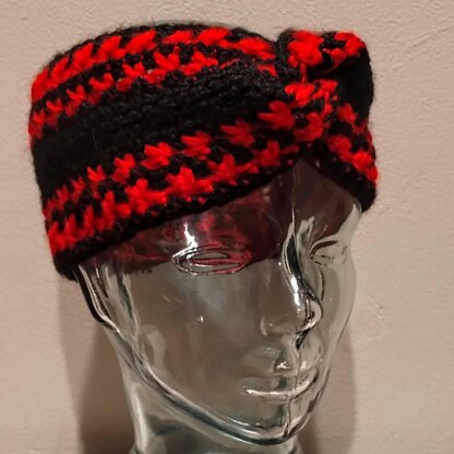 The Twisted Lattice Ear Warmer is worked in rows using the linked tunisian simple stitch, crossed double crochet stitch and half double crochet cluster stitch. Once complete, it is seamed together with a twist to give it added texture and pizazz!