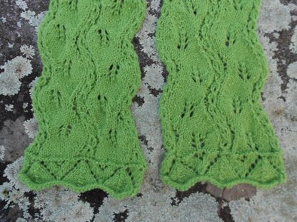 Twisted Leaves Lace Scarf is a cozy scarf that knits up quickly, with warm, worsted weight yarn. The scarf features a lovely border at both ends, a fascinating, yet easy, winding leaf pattern that works from side to side, and with a simple, mock cable entwined between the leaves to set it off. Because of the nature of the pattern, the edges will curve back in forth in an attractive wave. The pattern is worked from the bottom up, and then placed on hold near the end to add on the top edging which is then grafted on with the kitchener stitch. There are written as well as charted instructions for ease in knitting.