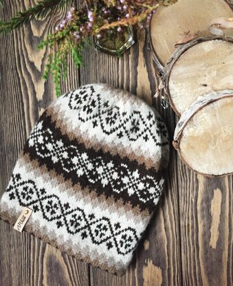 • Circular knitting needles 3.5 mm [US4] with 40 cm [16 in] cord, or DPN set in same size. • crochet hook 3.5 mm [USE/4] • Yarn Holst garn Noble (95% geelong wool, 5% cashmere), 50 g [1.75 oz] – 333 m [364 yds], yarn held double. • Сolors: 2946 – Earth, 1 skein; 2959 – Mouflon, 1 skein; 2898 – Pale Oak, 1 skein; 3193 – Almond, 1 skein.