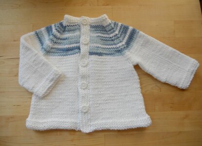 For this baby cardigan, I used several of my favorite sweater design elements - bottom-up seamless construction, raglan shoulder shaping, and garter stitch borders. The body of the cardigan is worked back and forth on one circular needle and the sleeves are worked in the round, then the pieces are joined and worked together. The only “seams” are a few underarm stitches that are grafted together once the sweater is finished. The body has a slight A-line shape to accommodate diapers, and I left the sleeves wide enough to be rolled up if needed. I used Lily Sugar ‘n Cream yarn since it’s sturdy, machine-washable, and I happened to have plenty on hand, but feel free to use any soft, worsted-weight yarn that you prefer.