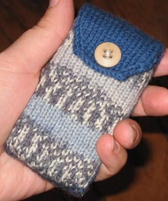 This cute cell phone cozy is constructed in two contrasting colors without seams. It’s a quick and easy project intended to protect your cell phone from the scratches of daily life. Pattern instructions are general to allow for personalization to the size of any cell phone, iPod, or similar device. The pattern is perfect for leftover bits of any fingering-weight sock yarn including self-patterning or self-striping yarns.