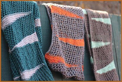Notions: Crochet hook and extra needle for provisional cast on, tapestry needle. Skill level: Intermediate (short rows, changing color, grafting). Size/Finished measurements: Height: 8.5” tall. Length: Make as long or short as you’d like! Versions shown here: Two repeats/One loop: 32” around. Three repeats/Two loops: 48” around. Five repeats/Three loops: 80” around.