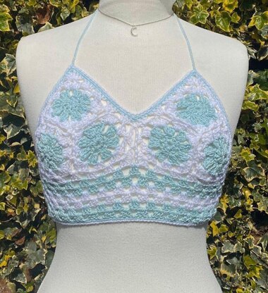 This top is designed to fit S/M. It measures 20.25cm/8" from top of cup to bottom of band. The back is tied, so it’s adjustable.