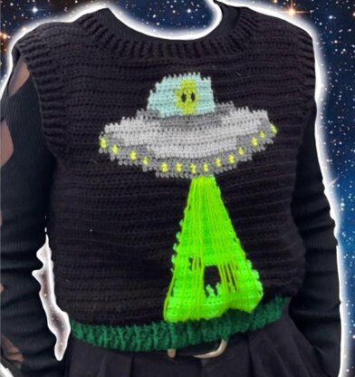 This pattern is inspired by 80s alien abduction posters.