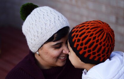 Uljhan is Hindi for "Entanglement" or "In two minds". This fun beanie features a play on a 2x2 rib, using two colors of yarn. It also uses a 1x1 cable at specified intervals, to form a pretty pattern over the body of the beanie. The pattern was born primarily out my necessity of a warm hat for my son. The colorwork makes for a very cozy inner fabric and should keep my son warm and toasty in the extreme winters here in Canada. The choice of the two colors of yarn highlights the stitch pattern, and the ribbing provides a great fit for the wearer.